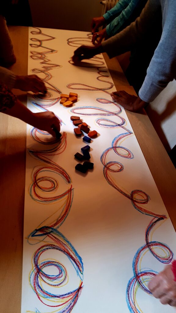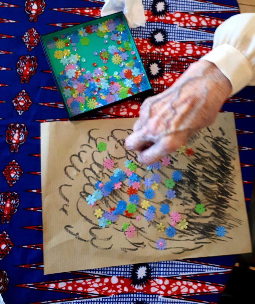 Quelques créations illustrant mes accompagnements en individuel ou en groupe depuis trois ans, notamment auprès d’enfants, de jeunes adultes, de résidents en maison de retraite et de personnes atteintes de la maladie d’Alzheimer.